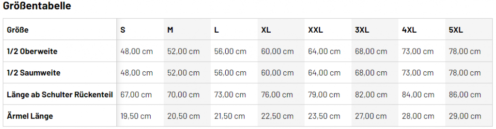 S, M, L, XL, XXL, 3XL, 4XL, 5XL